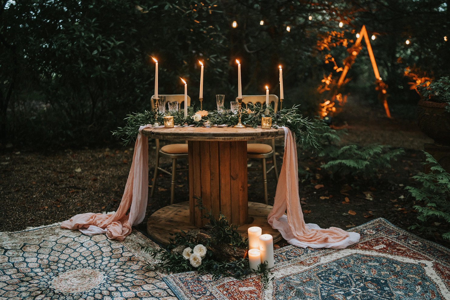 Take this old disused cable reel for example - a bit (ok a lot) of sanding and a tin of wood stain, adorned with candles, and of course lots of foliage - doesn't it just make the cutest sweetheart table? Plus it was saved from ending up in the skip, so by giving it a new purpose it has been less impactive on the environment too.
