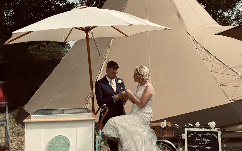 But wait, there is more. Daisy is not just all we offer. Our band has extended further. We offer a few extra items for example, Tilly she is our vintage style ice cream Tricycle. She is one of our beautiful projects we created over lockdown. and she has been a huge hit over last summer. Again, we have kept her in the same colours of Daisy in the beautiful vintage style sage green and cream, so they complement each other.