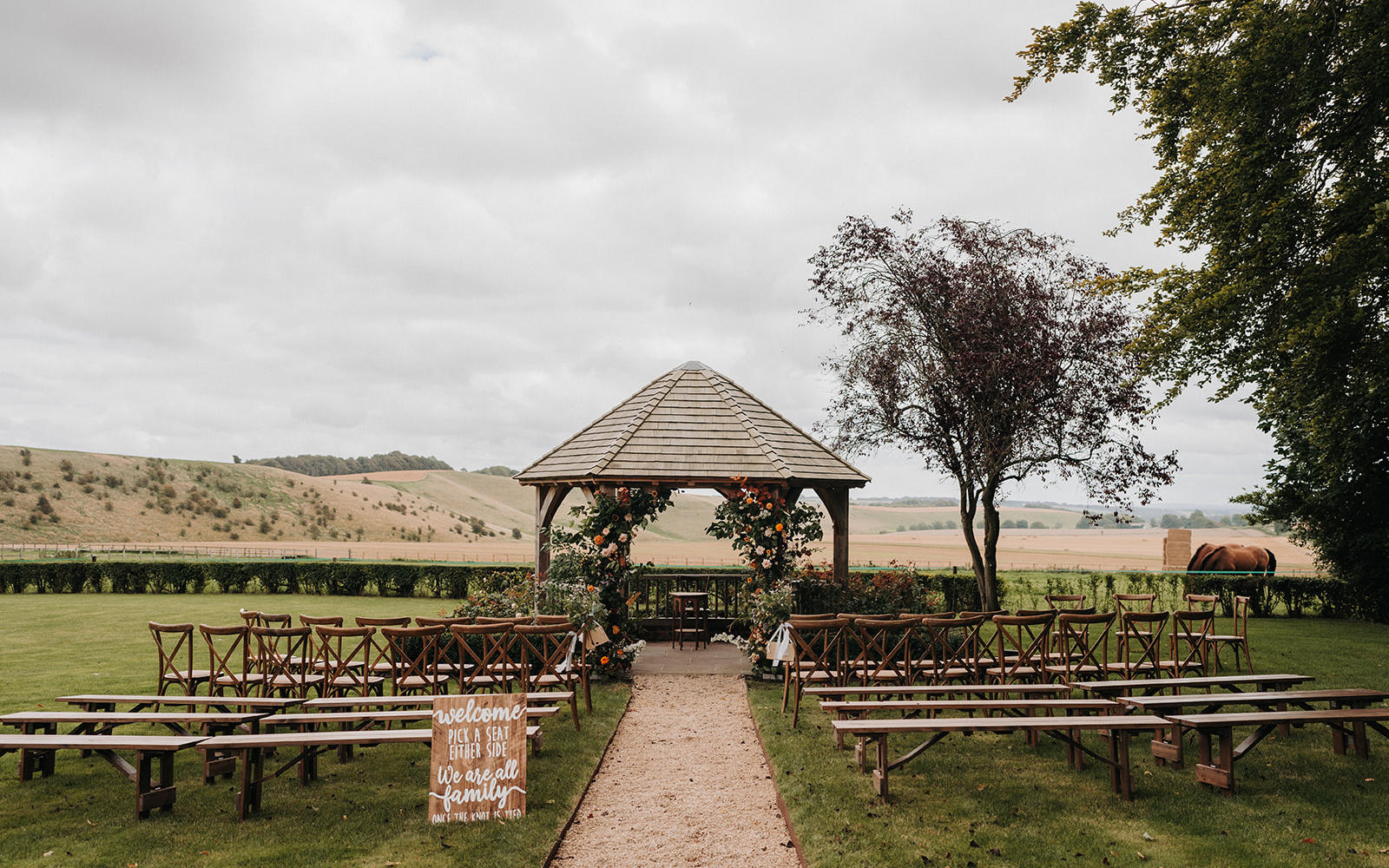 After months of meticulous planning and preparations, the couple said 'I do' under our beautiful oak framed gazebo, which was adorned with magnificent burnt orange flowers crafted by Izzy from Seed and Stem Florals. The ceremony was followed by a drinks reception on the lawn, with signature Sloegasm's (prosecco & sloe gin) and gin & tonic, served from under our stretch tent.