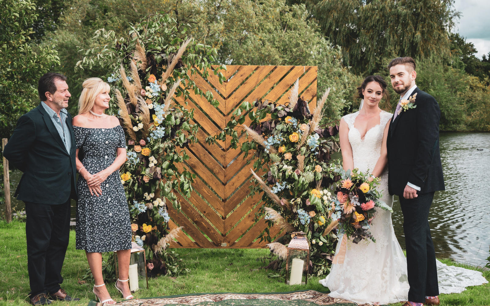 This beautiful styled shoot was set at a lakeside location at Maisemore Court Lakes. We chose to show an outdoor ceremony with a beautiful floating arbor to frame the event set with boho nods including lanterns and a rug to give the feeling of bringing the inside outdoors and to help give the feeling of intimacy to the setting. With a smaller number of guests this formed an important part of the ceremony.